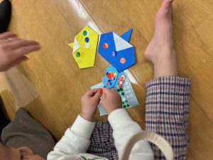 【報告】「折り紙おににシールを貼って完成」「思い思いの遊びが楽しい!」