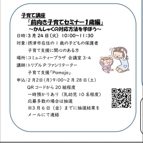 ☆吹田市前向き子育てプログラムは1月18日から吹田市立総合福祉会館です。